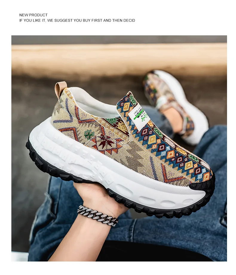 Man Plus Size for Men 2025 Wedges Platform Sneakers Fashion Weave Hollow Ladies Loafers Slip-on Casual Shoes