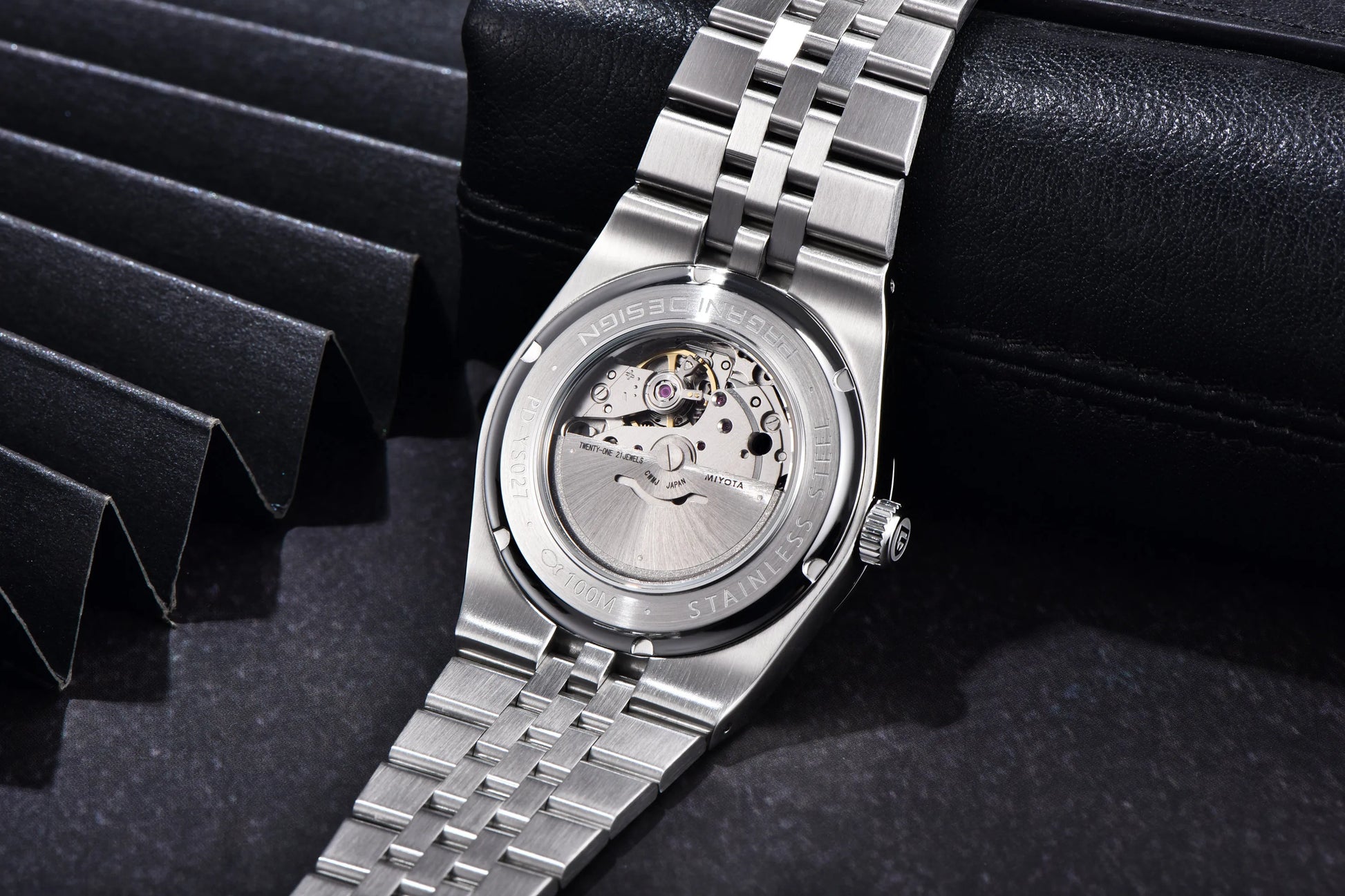 10Bar professional waterproof construction (100 meters) with screw-down steel crown. Maintains grace whether navigating torrential rains or aquatic adventures.